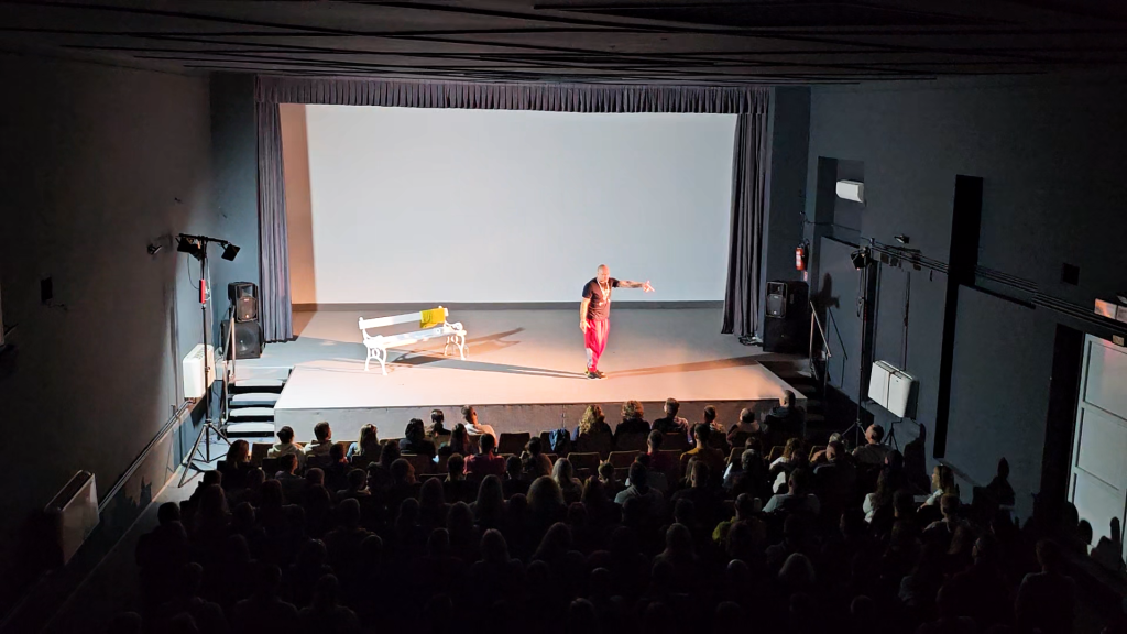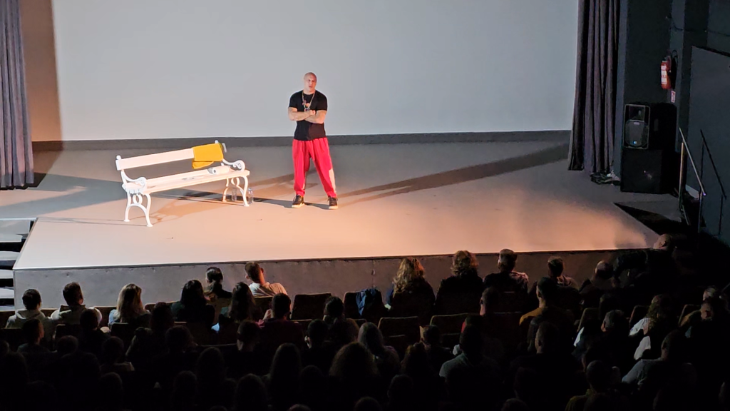 Na samom početku predstave Stoka je publiku zamolio da skloni mobitele. I zaista publika u Kinu Brdovec nije snimala ili se dopisivala, jer se reper osobno potrudio da naredna gotovo dva sata budu vrtoglava – i poučna.