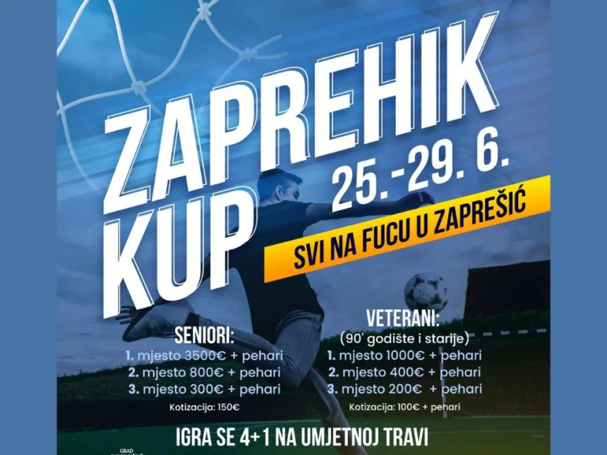 Od 25. do 29. lipnja u Zaprešiću će se održati treće izdanje malonogometnog turnira pod nazivom “Zaprehik kup”. Natjecanje će se odvijati na umjetnoj travi Športsko-rekreacijskog centra Inker Zaprešić, a prijave su otvorene za dvije kategorije – seniori i veterani.